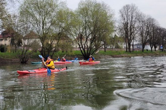 Die Besetzung ist international, von polnisch über flämisch bis französisch. Es gibt Rennboote, Wildwasserboote, Kanadier und Wanderboote wie unsere.