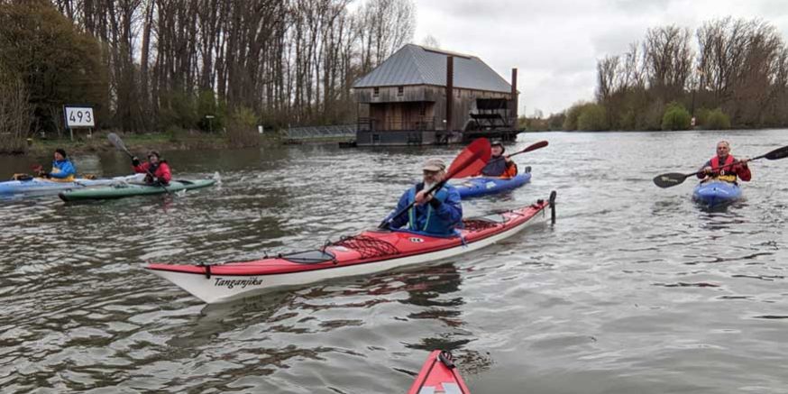 Die vertraute Strecke ist sehr kurzweilig und der Rhein hat viel Strömung heute, es paddelt sich fast von allein. Für die, die sich für das „bergauf“ paddeln, entschieden haben, ist es bisschen mehr „sporty“, aber sie treffen uns pünktlich in der Bleiaue und paddeln dann genüsslich mit uns zurück.